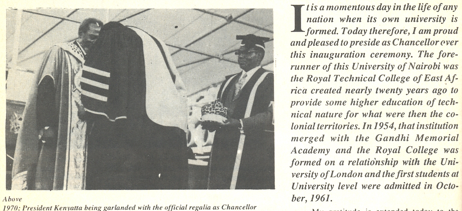 1970-President Kenyatta being garlanded with the official regalia as Chancellor