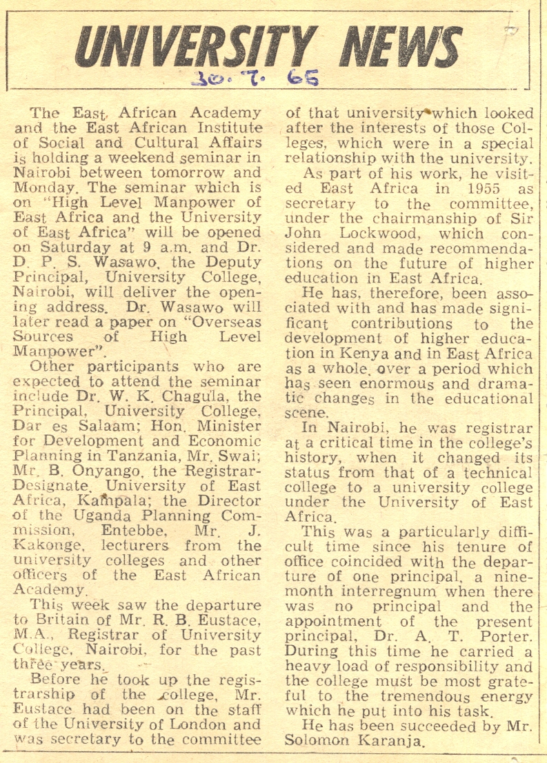 East African Standard; 30.07.1965