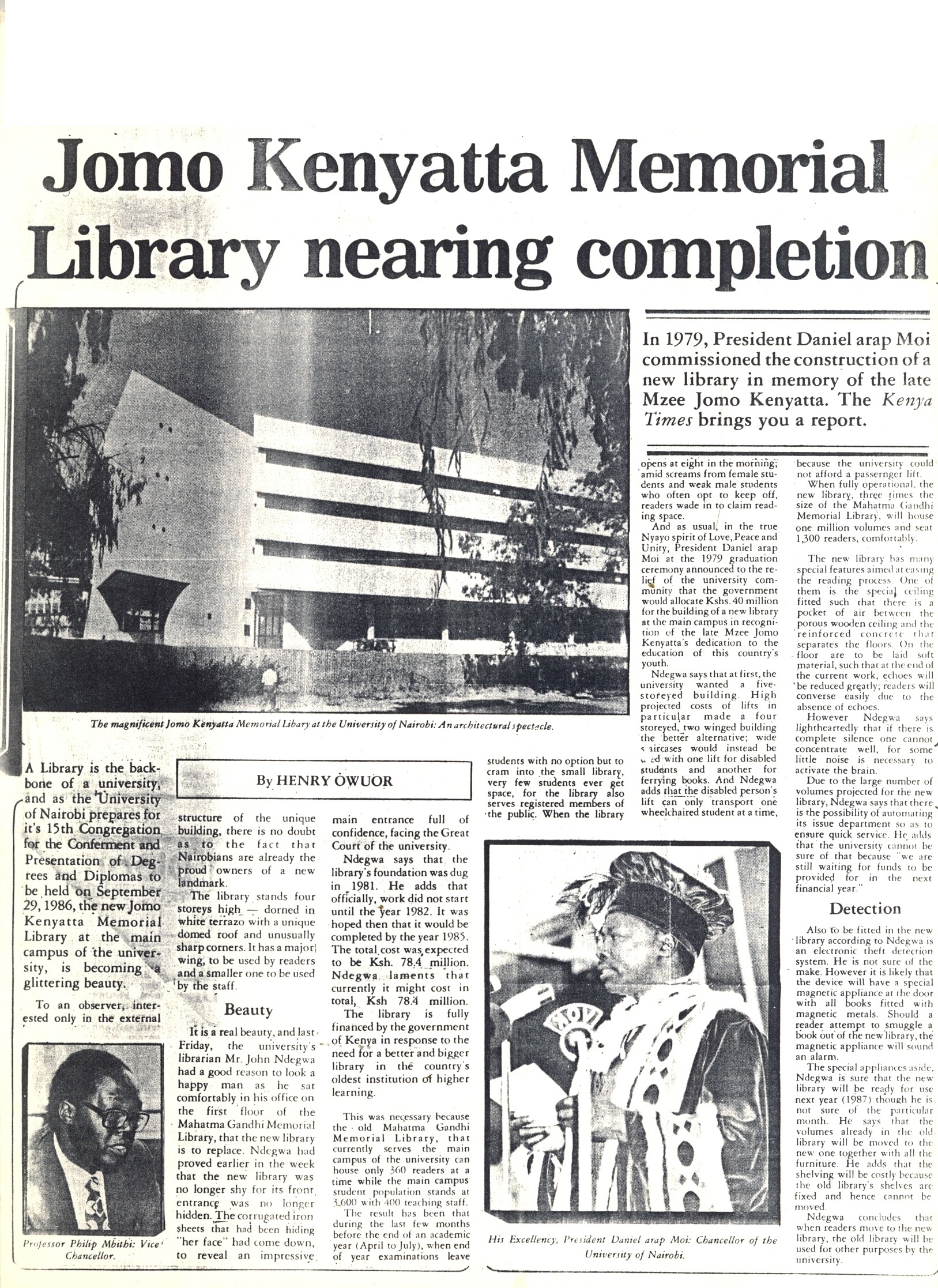 1986-Jomo Kenyatta Memorial Library nearing completion