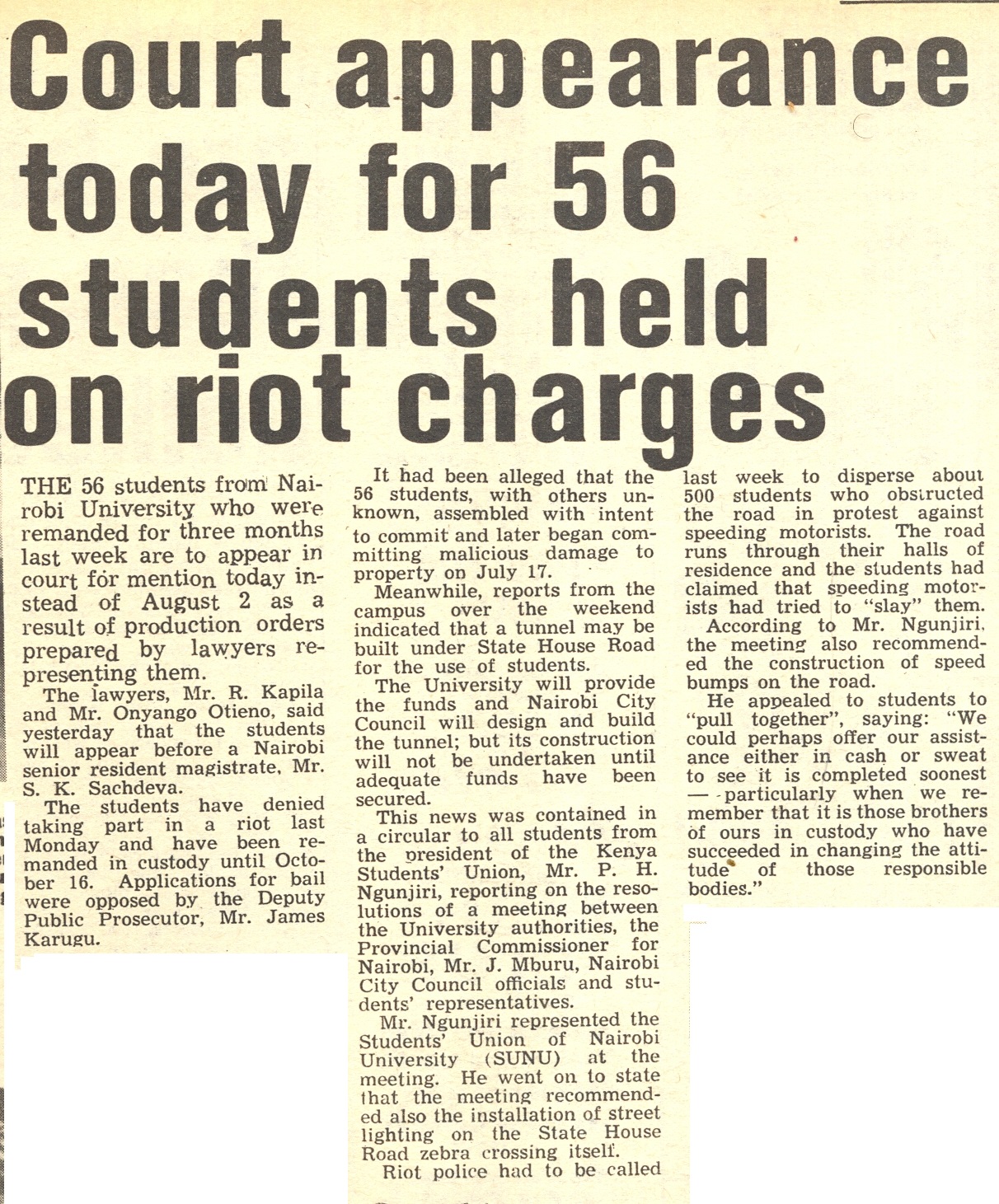 1972-Court appearance today for 56 students held on riot charges