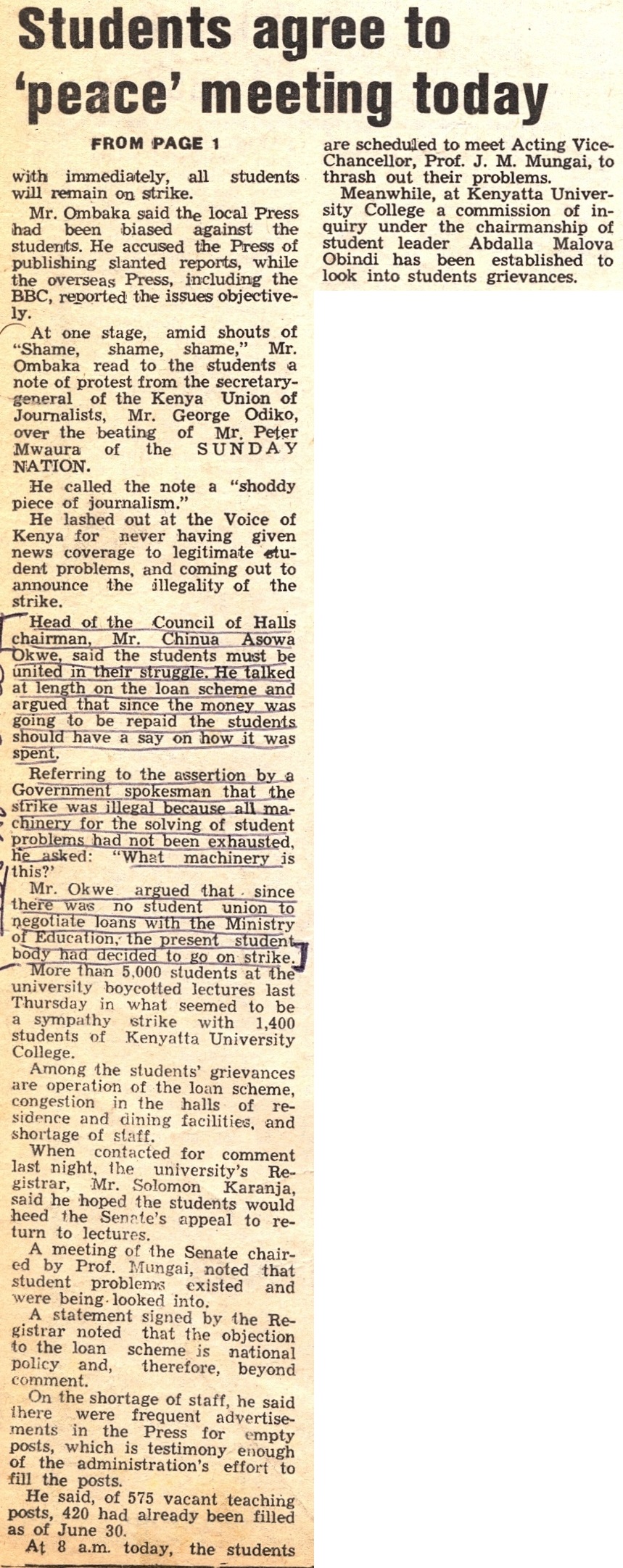 Daily Nation; August 12, 1974 Pg 1 & back page