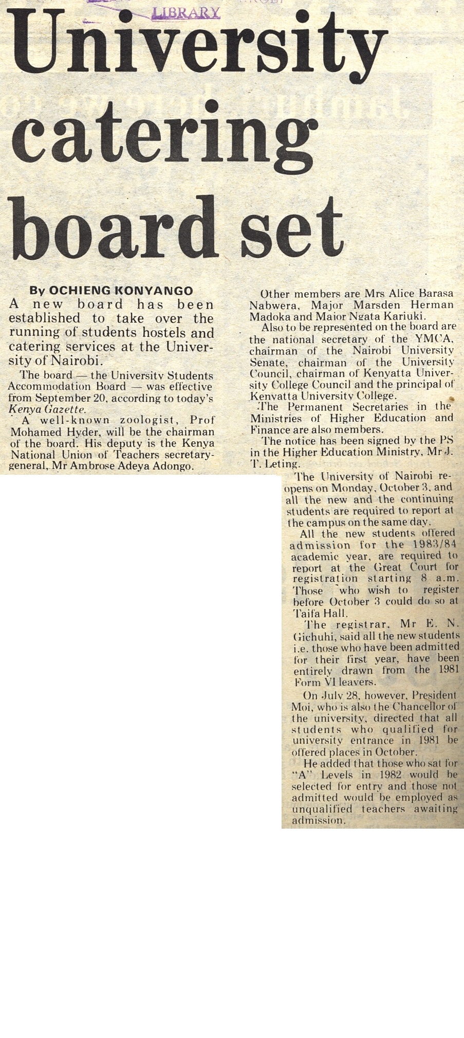 Daily Nation, September 23, 1983.
