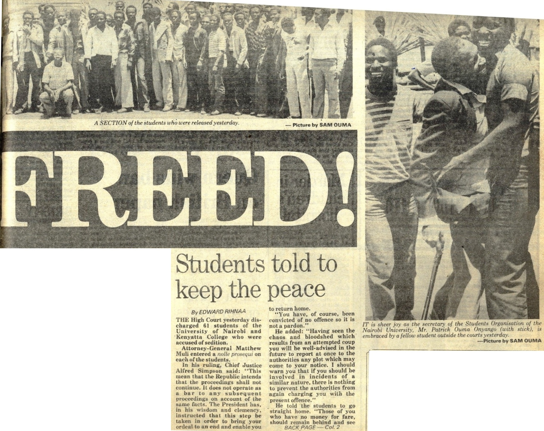 Daily Nation, February 23, 1983 pg 1 & back page.