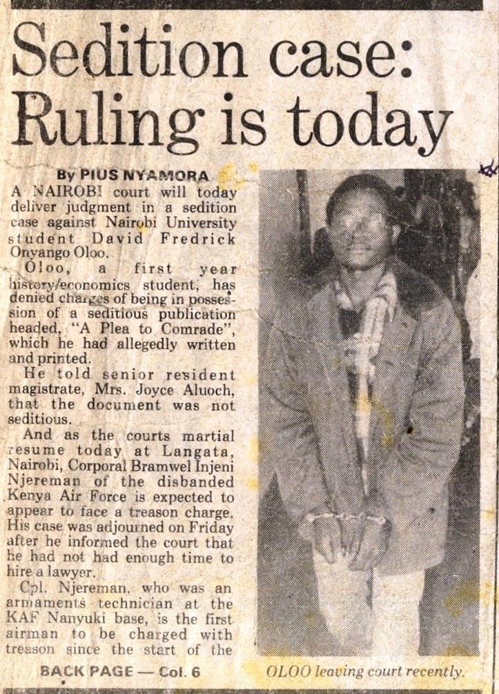 1982-Court is to rule on Oloo case; sedition case ruling is today