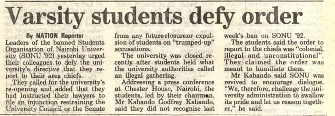 Daily Nation 12th,August 1992 pg 3.