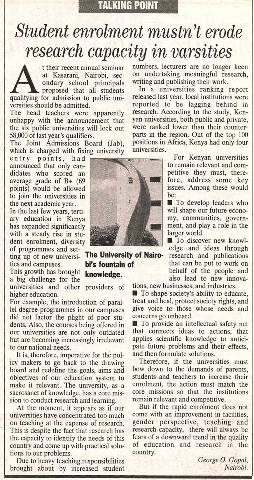student enrolmentvmustnt erode research capacity in varsities Sunday Nation july , pg 10.jpg (1.150Mb)