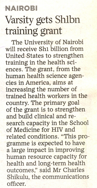Varsity gets Sh 1 bn training grant; October 11, 2010 pg9