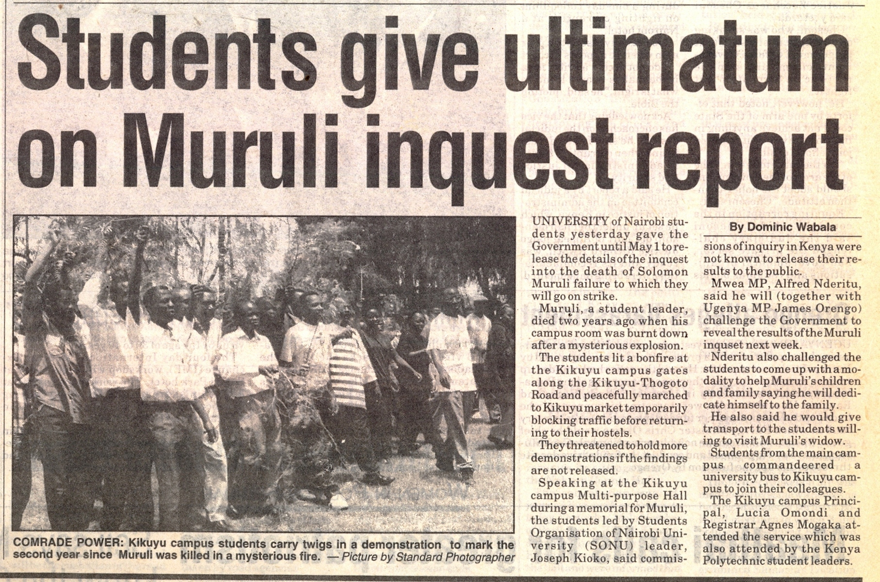 Students give Ultimatum on Muluri inquest report (April 1999)
