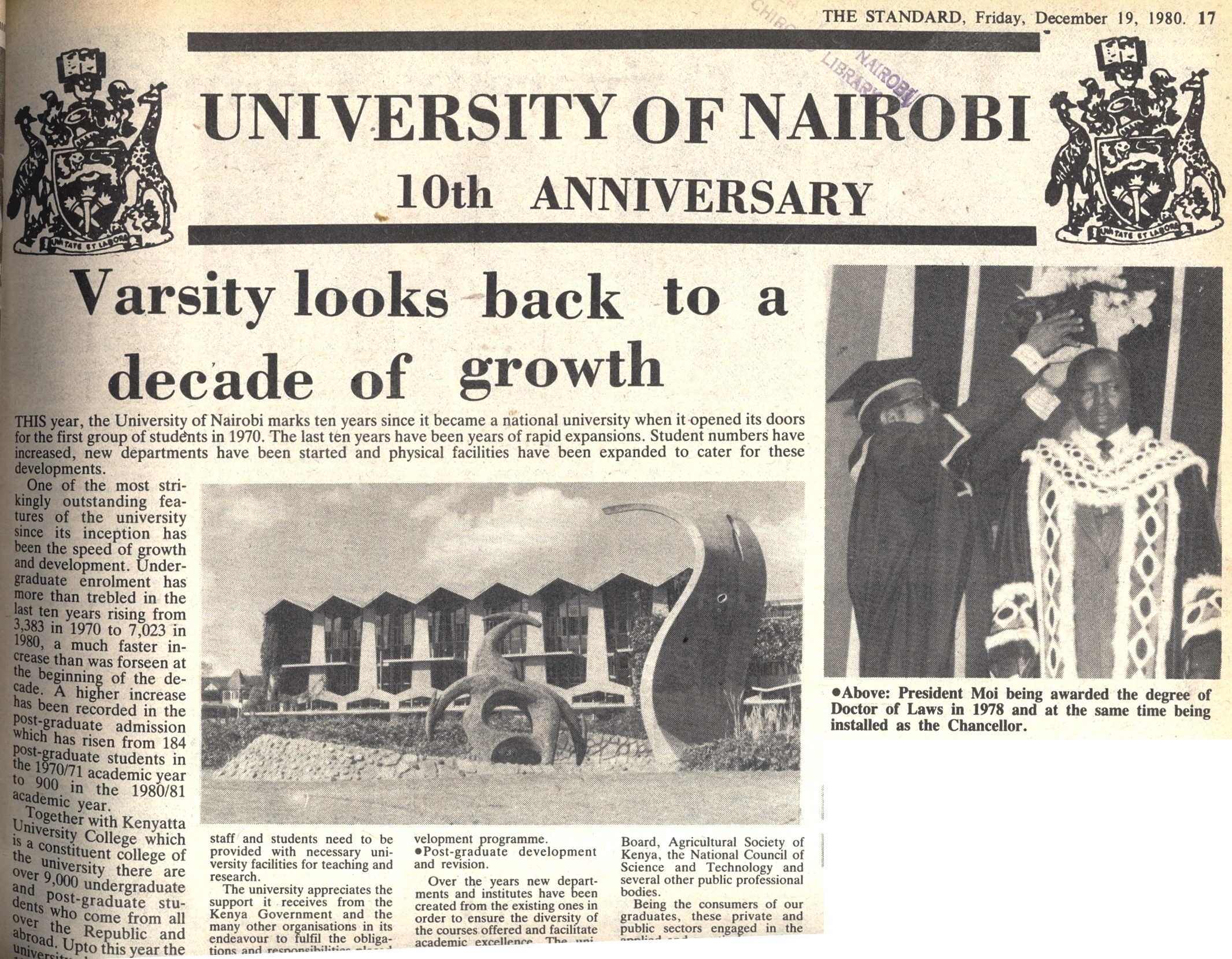 1980-University of Nairobi 10th Anniversary:Varsity looks back to a decade of growth