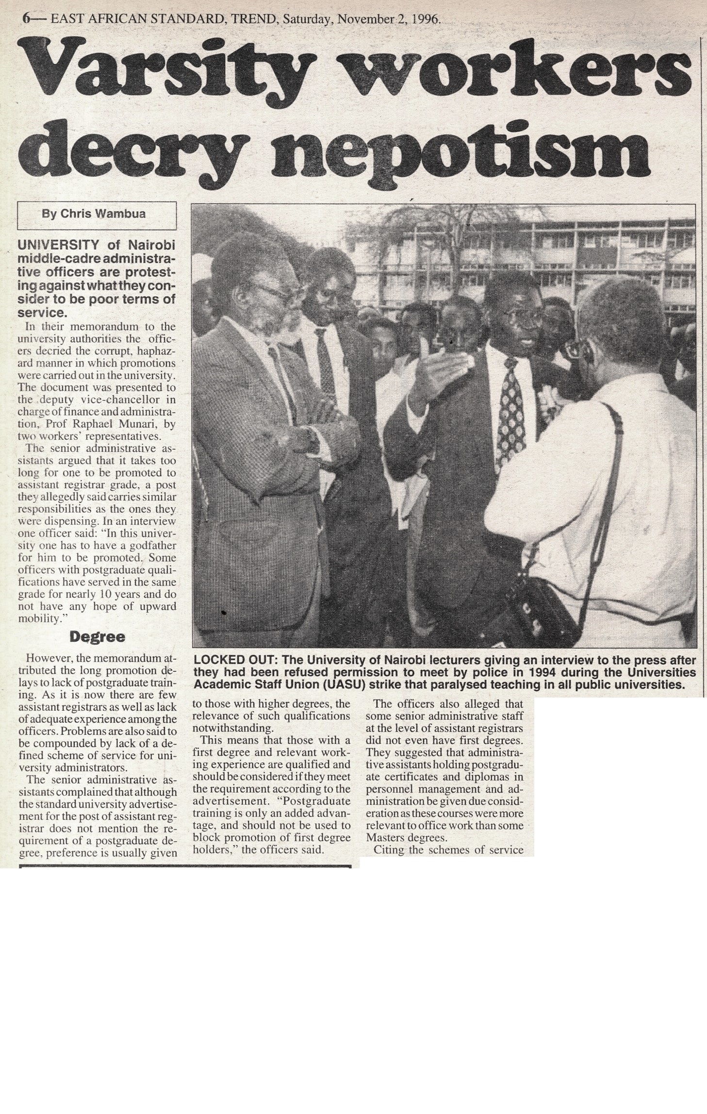 1996-Varsity workers decry nepotism