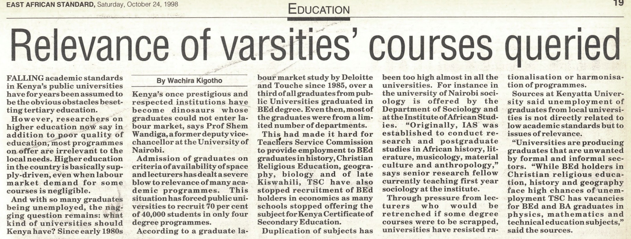 1998-Relevance of Varsities Courses Queried