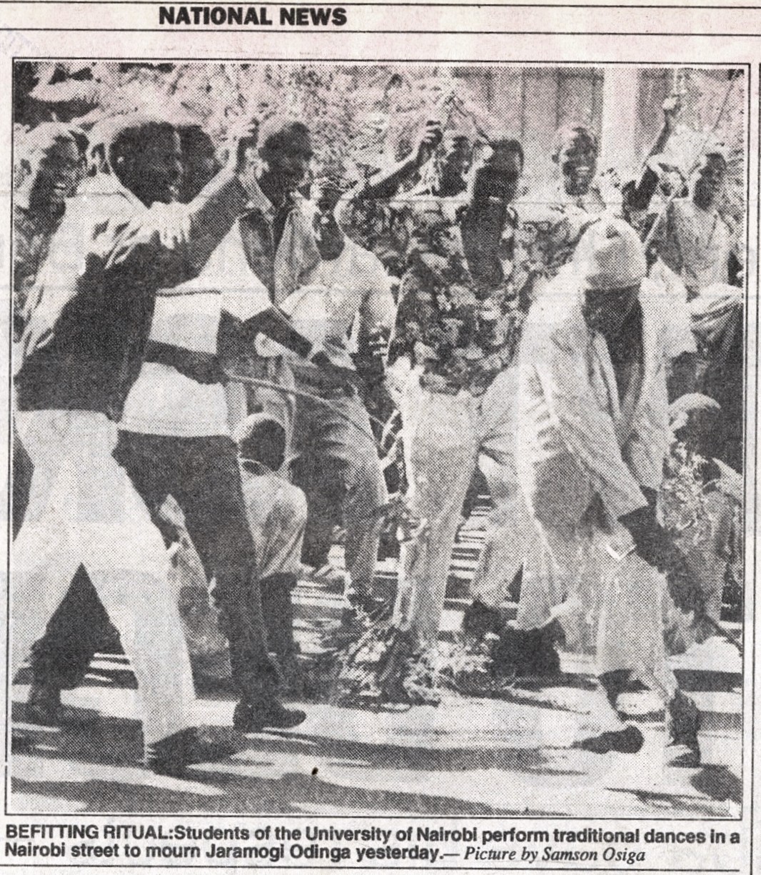 1994-Students perform traditional dances to mourn Jaramogi Odinga