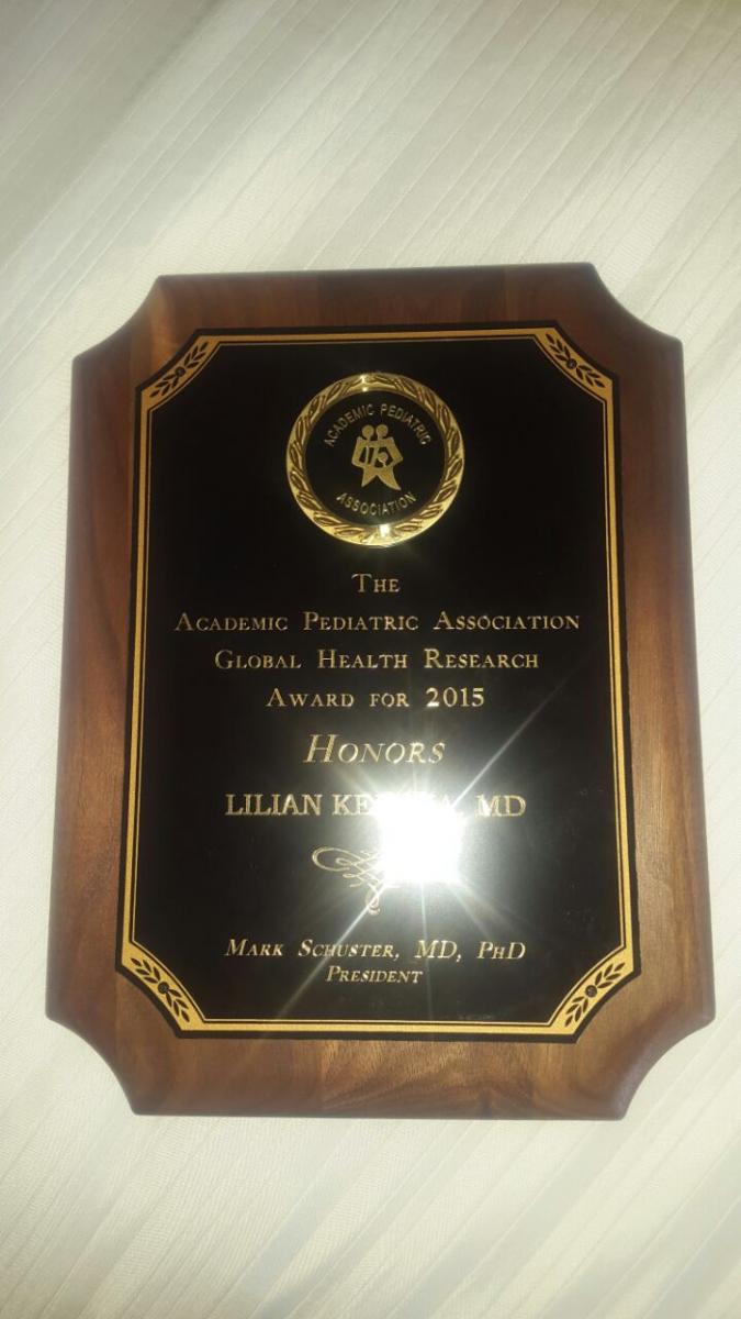 Dr. Lilian Kebaya - Winner of the 2015 American Pediatric Academy (APA) Global Health Research Award